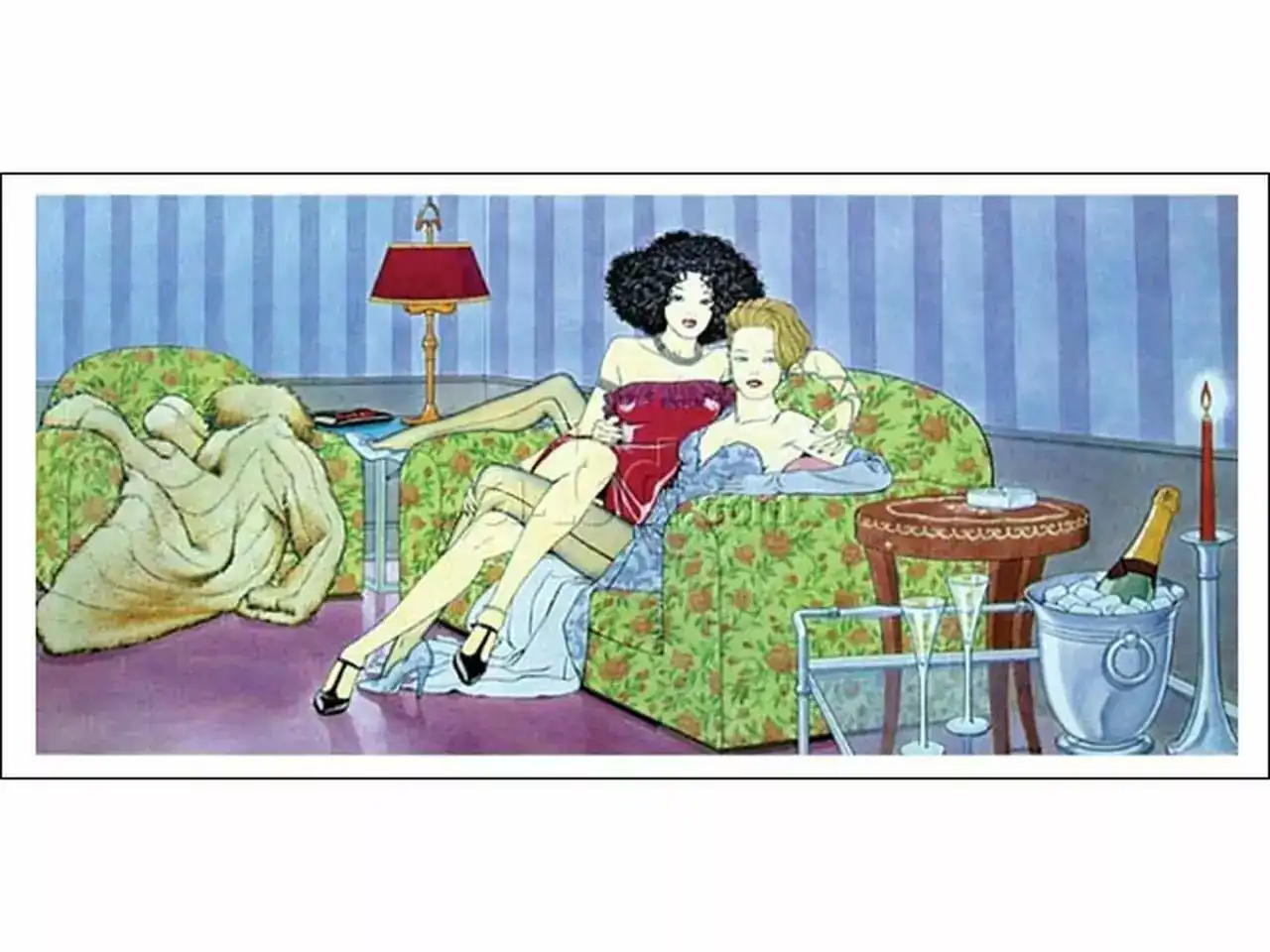 Tout d’abord, l’affiche offset 2 femmes sur un canapé met en avant le style graphique raffiné de Vittorio Giardino. Ainsi, cette reproduction reprend une illustration emblématique caractéristique de son trait précis et élégant. De plus, le procédé offset garantit un rendu fidèle des couleurs et des détails.