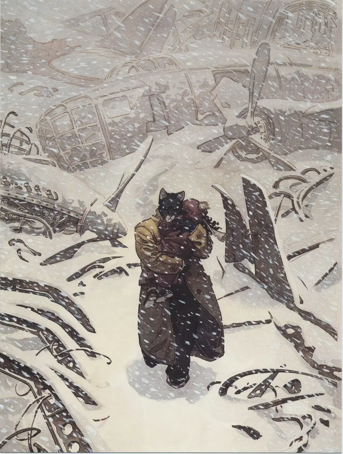 À vrai dire, la neige n’est pas ici un simple décor. D’un côté, elle accentue l’isolement, la tension et la dureté du récit. De l’autre, elle permet à Guarnido d’exprimer toute la subtilité de son dessin, entre blancs, ombres et silences visuels. Résultat : cette affiche se distingue clairement des autres visuels de la série.