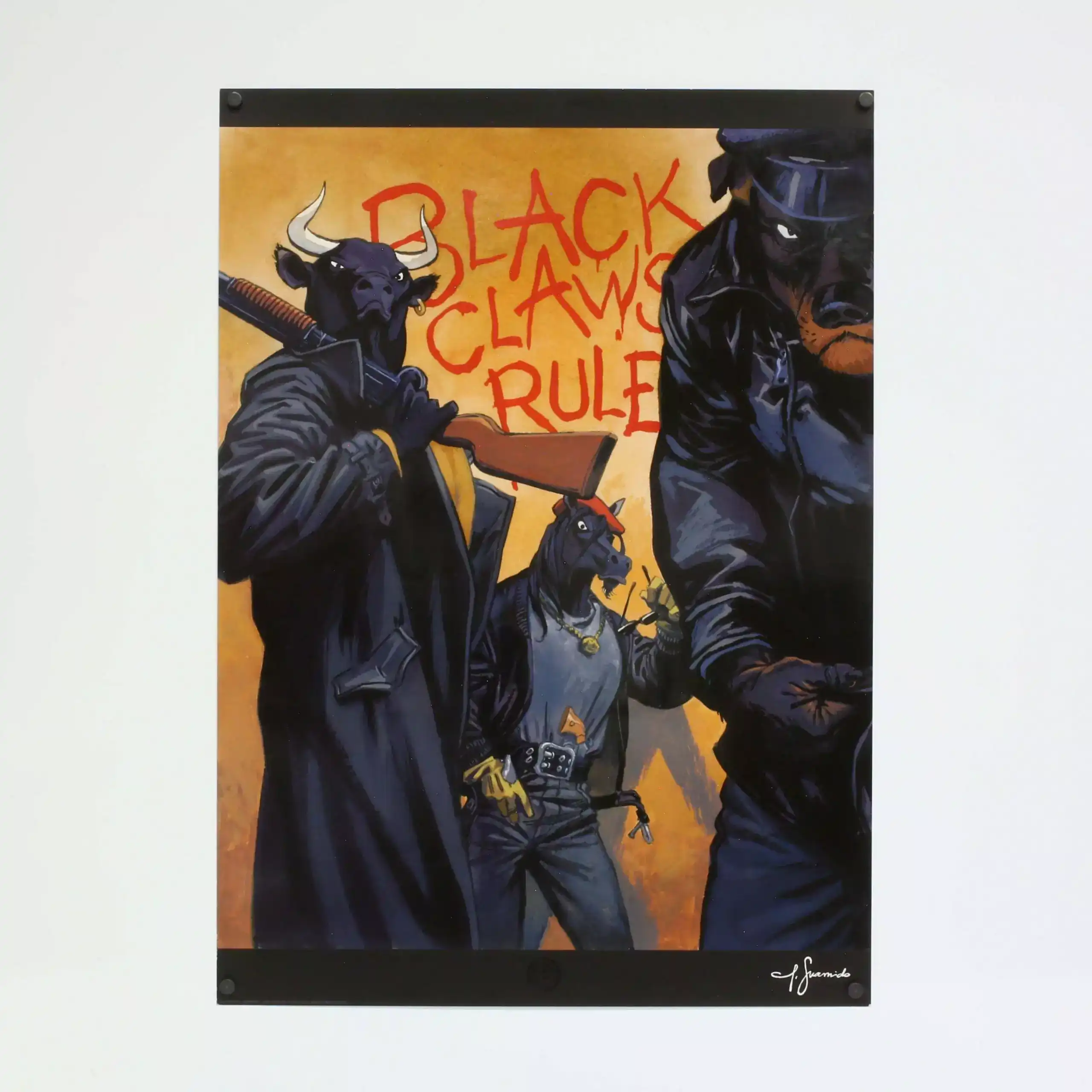 Honnêtement, cette affiche est l’une des plus percutantes de l’univers Blacksad. D’abord, parce que son message est fort et immédiatement identifiable. Ensuite, parce qu’elle est intimement liée à Arctic Nation. De plus, le dessin de Guarnido lui donne une puissance visuelle rare. Enfin, si tu recherches une affiche Blacksad engagée et marquante, Black Claws Rule est un choix évident.