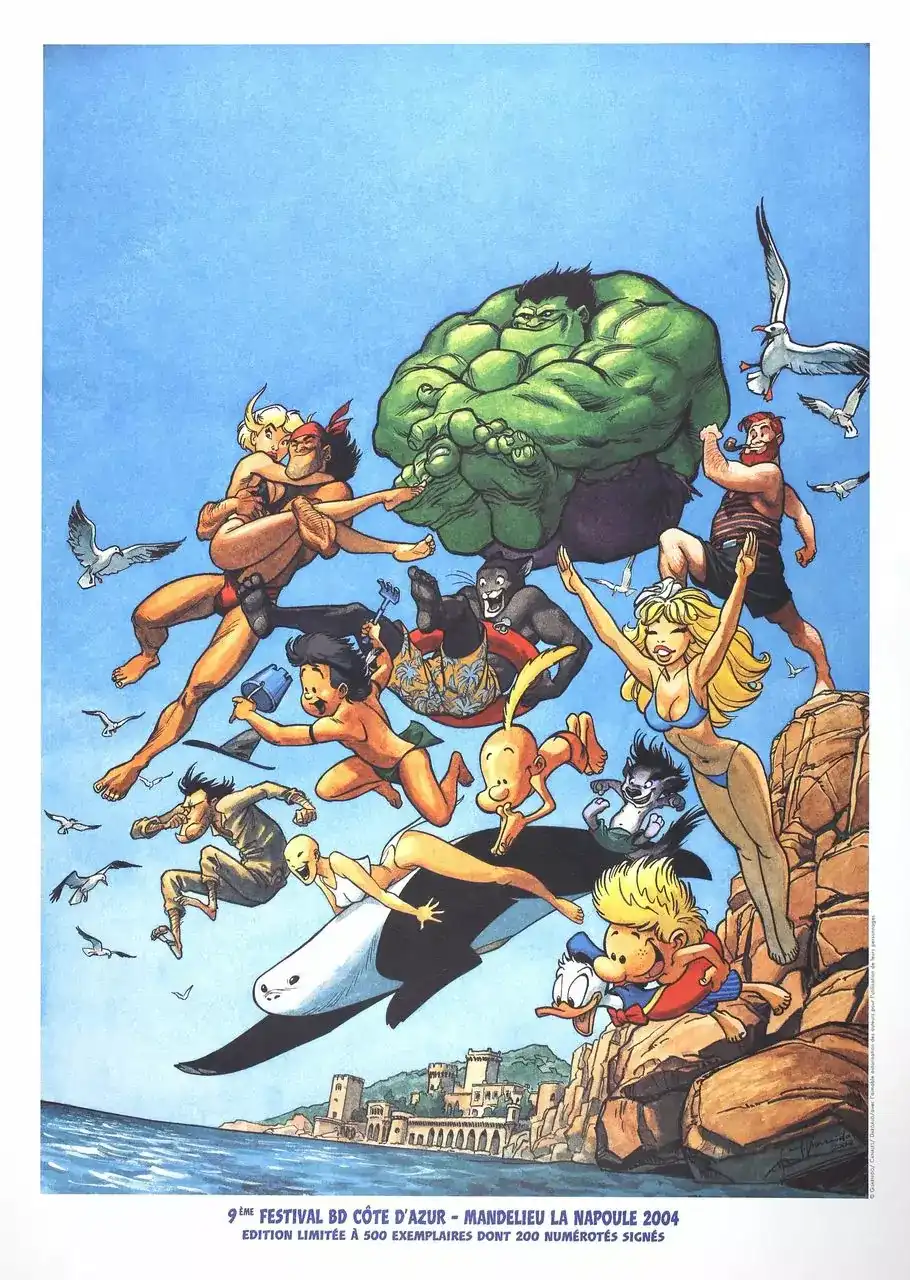 En effet, Juanjo Guarnido nous offre ici une véritable farandole d’hommages. Ensuite, on y retrouve des clins d’œil graphiques à de nombreux auteurs et univers emblématiques. Parmi eux figurent notamment Edgar P. Jacobs, Zep, Léo, Tibet, Dany, Marini, mais aussi l’influence Disney, Laudec et d’autres références majeures du 9e art. De plus, ces hommages sont intégrés avec finesse, sans jamais rompre l’équilibre visuel de l’illustration.
