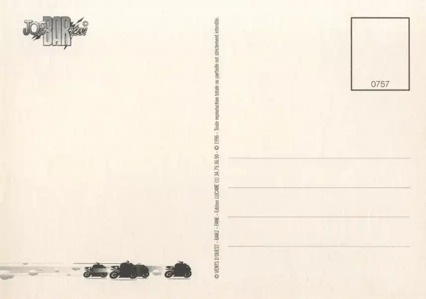 D’abord, elle fera sourire tous les fans de moto et d’humour vintage. Ensuite, elle s’offre aussi bien à un ami qu’à soi-même. De plus, cette carte postale Joe Bar Team complète à merveille une collection d’objets de la série. Enfin, elle incarne l’esprit authentique et irrévérencieux qui fait le succès des Joe Bar depuis des décennies.