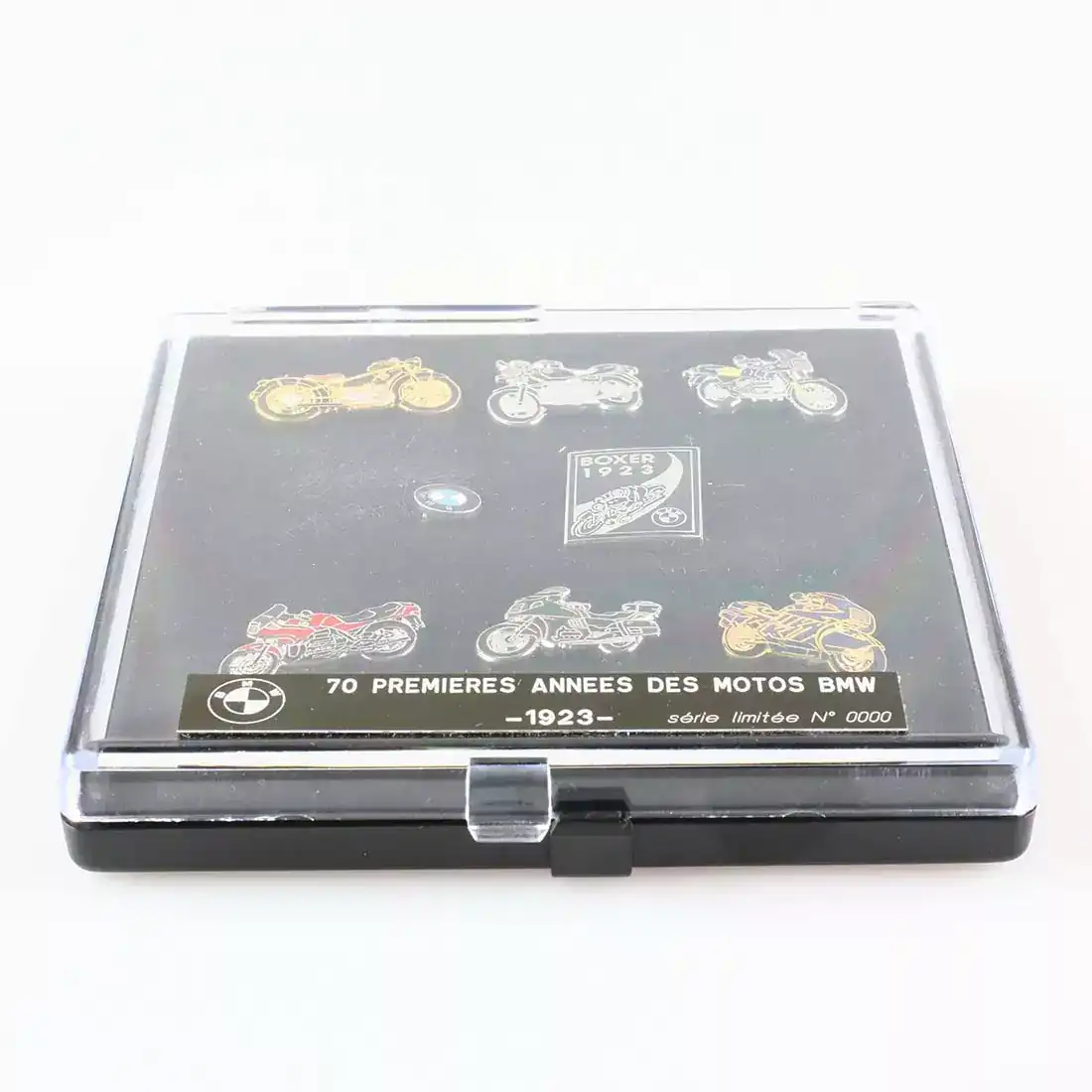 Tout d’abord, ce coffret signé Démons & Merveilles rassemble huit pin’s BMW représentant les modèles emblématiques des soixante-dix premières années de la célèbre marque allemande. Ainsi, cet ensemble rend hommage à l’évolution du design et du style des motos BMW depuis leurs débuts.