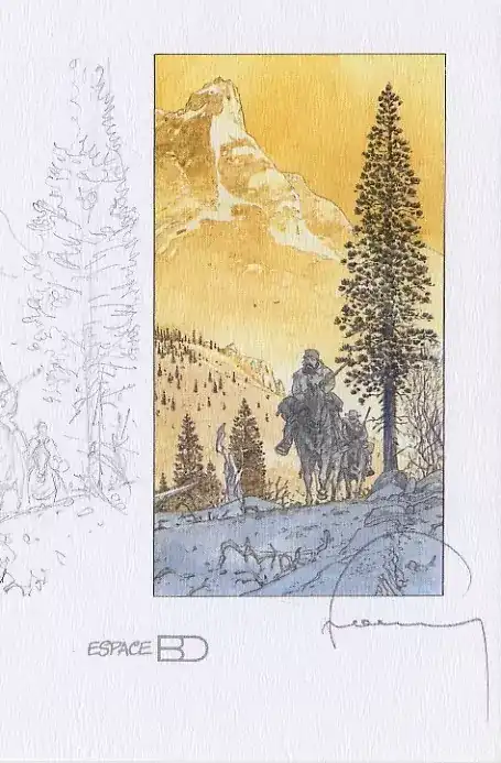 L’ex-libris Hermann signé intitulé « Dans les montagnes » attire immédiatement les amateurs de bande dessinée. En effet, Hermann est reconnu pour la puissance de son trait et son sens du détail. Il s’impose comme une figure majeure du neuvième art. Ainsi, cette œuvre met en avant toute la richesse de son univers graphique.