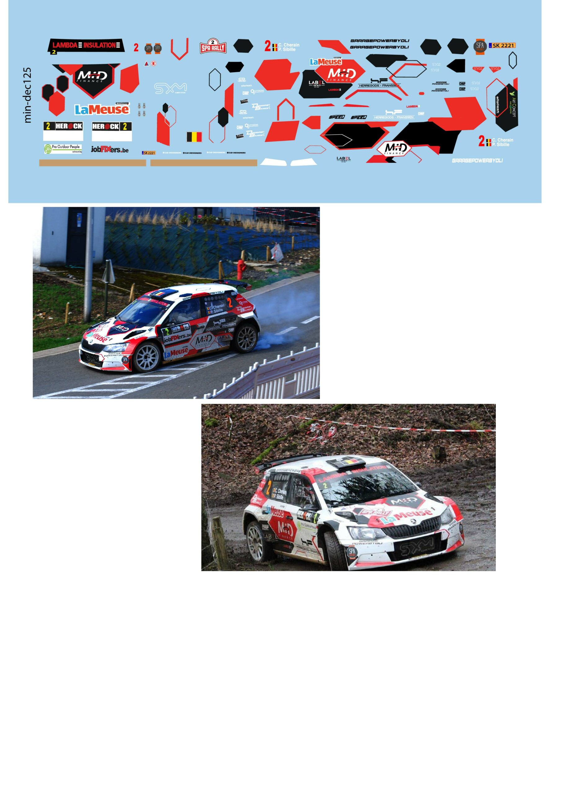 Décalcomanie pour miniature 1/43 SKODA FABIA R5 – Spa Rallye 2019 – CHEVRAIN – SIBILLE