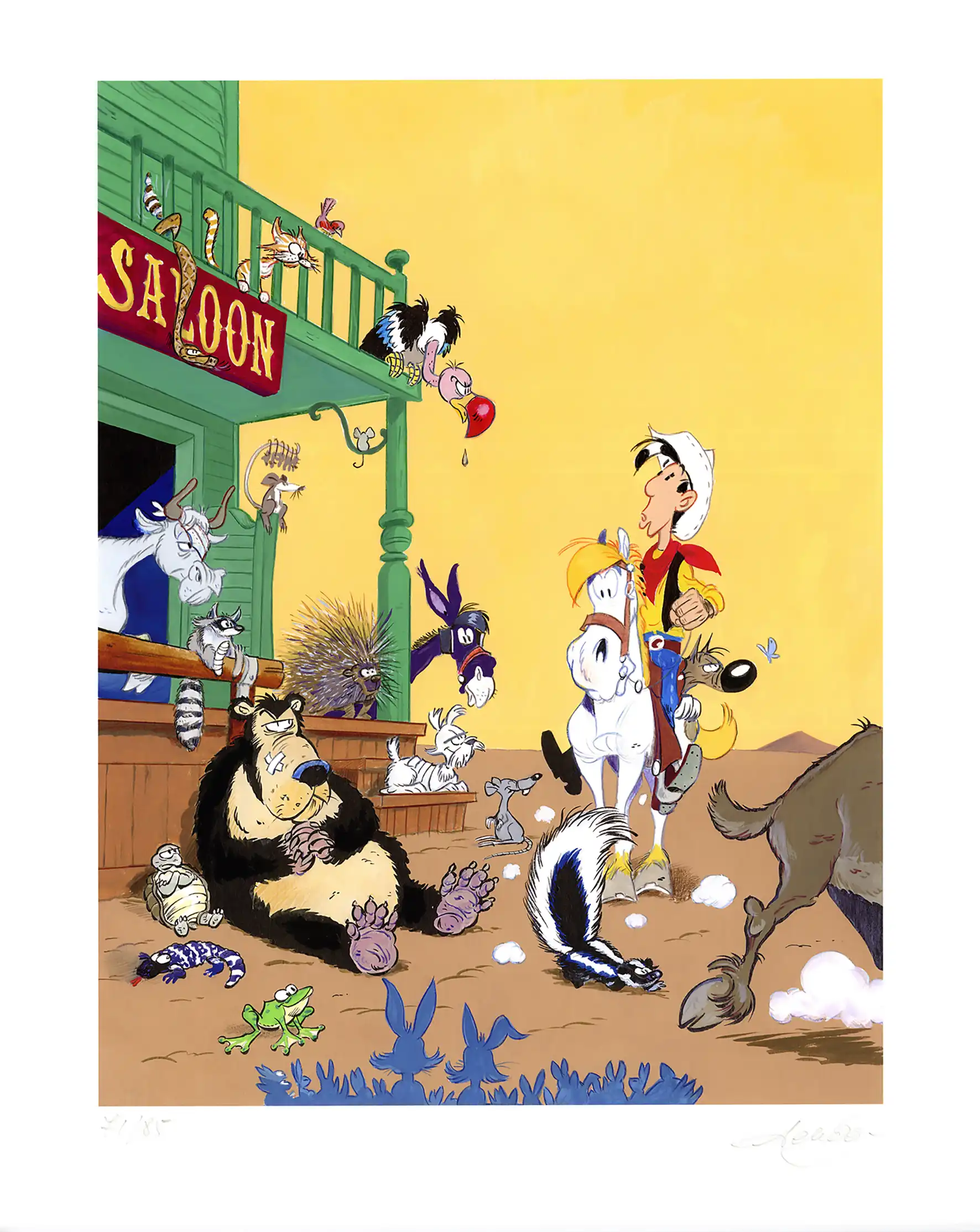Ainsi, ce tirage s’inscrit dans la tradition des œuvres graphiques dédiées à Lucky Luke.