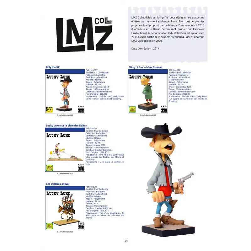 Ensuite, l’ouvrage se concentre sur les produits dérivés liés à Lucky Luke et aux personnages qui composent son univers. Notamment, il met en lumière la diversité des objets de collection et leur évolution au fil du temps. Ainsi, cette encyclopédie permet de mieux comprendre la richesse du patrimoine associé à la série.
