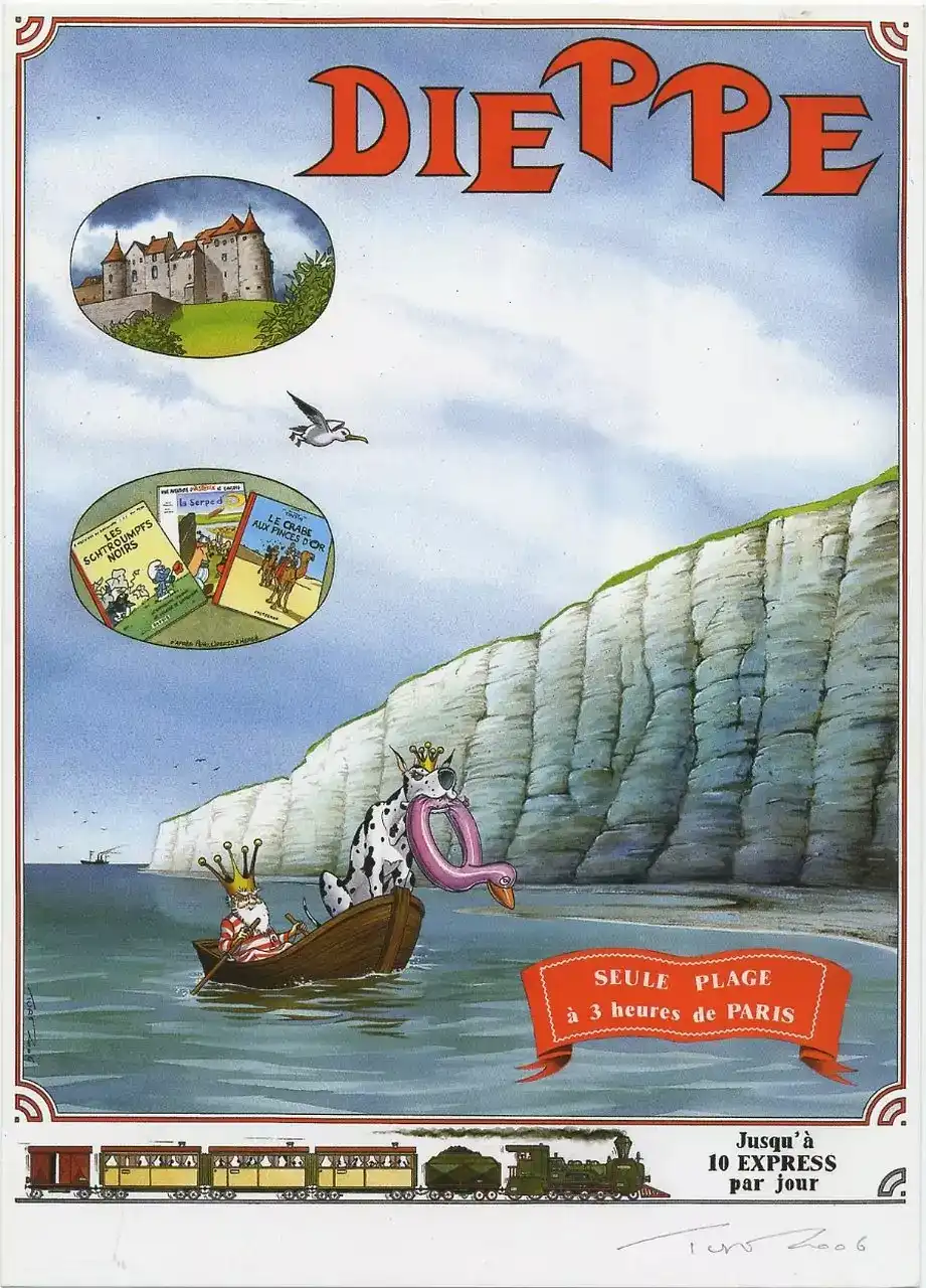 Alors, plonge dans l’univers singulier de Turf avec cet Ex-libris La Nef des Fous édité à Dieppe. Ce tirage offset signé témoigne de toute la richesse visuelle et narrative de la série. Ensuite, la scène illustrée incarne l’esprit farfelu et poétique de cette œuvre devenue culte. De plus, le dessin soigné, plein de détails et de finesse, transporte immédiatement dans le monde étrange et absurde de La Nef des Fous. Bref, un ex-libris d’exception pour tout amateur d’art BD et de tirages d’auteur.