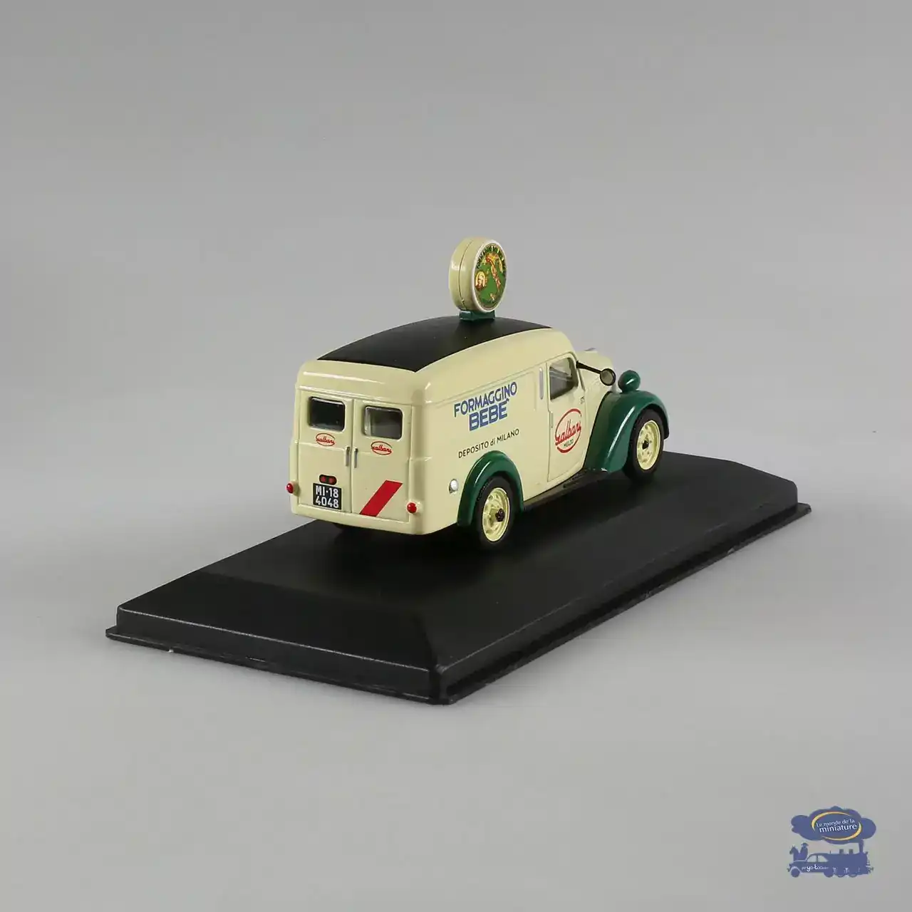 Ensuite, cette version se distingue par sa décoration spécifique. En effet, la livrée Galbani évoque l’univers des véhicules publicitaires. Par conséquent, ce modèle attire les amateurs de miniatures anciennes.