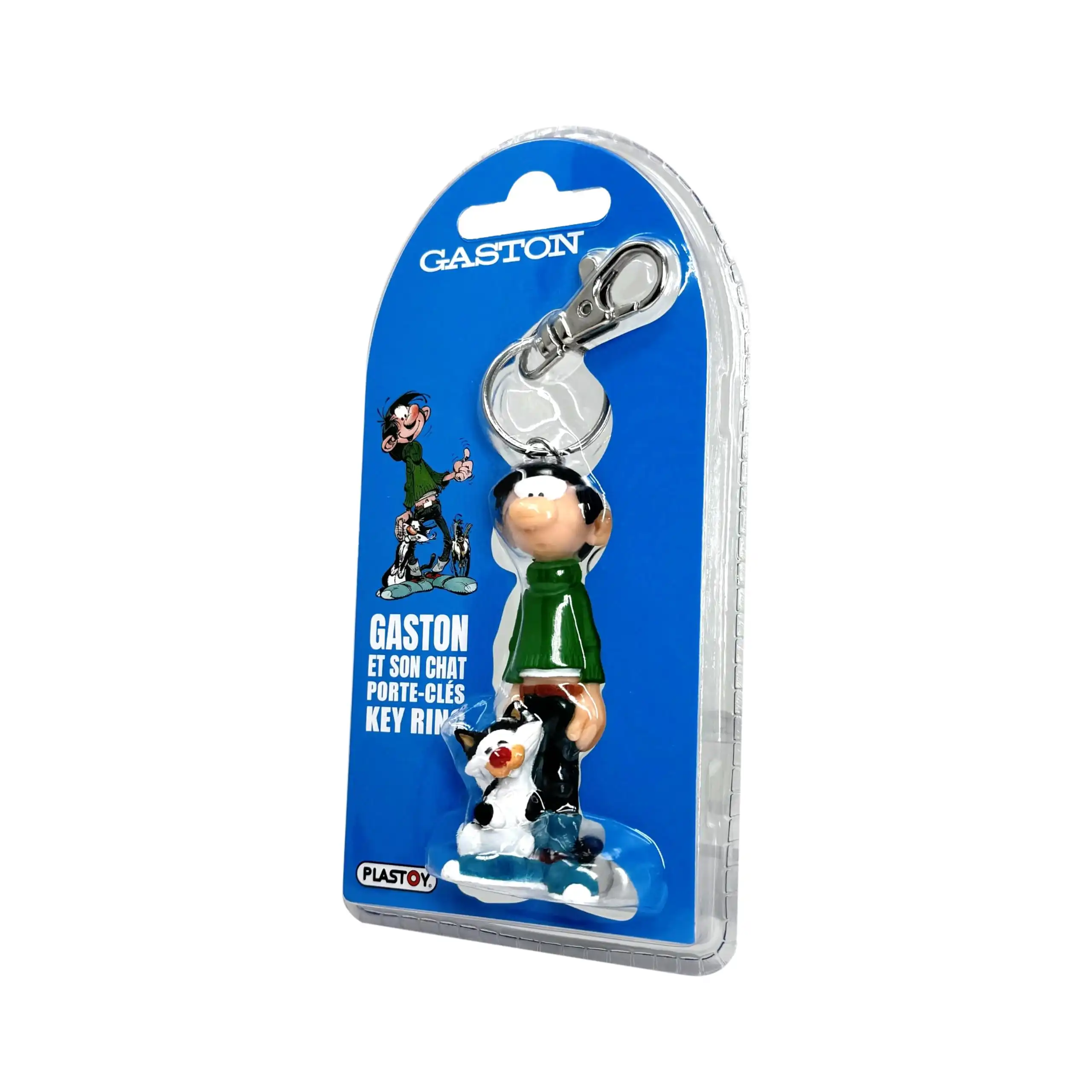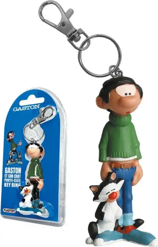 Ensuite, Gaston Lagaffe est reconnu pour son humour intemporel et ses situations absurdes. Notamment, son chat fait partie intégrante de son univers, renforçant le ton décalé de la série. Ainsi, ce porte-clés Plastoy évoque immédiatement l’esprit de la BD, sans représentation excessive, mais avec une identité clairement identifiable.