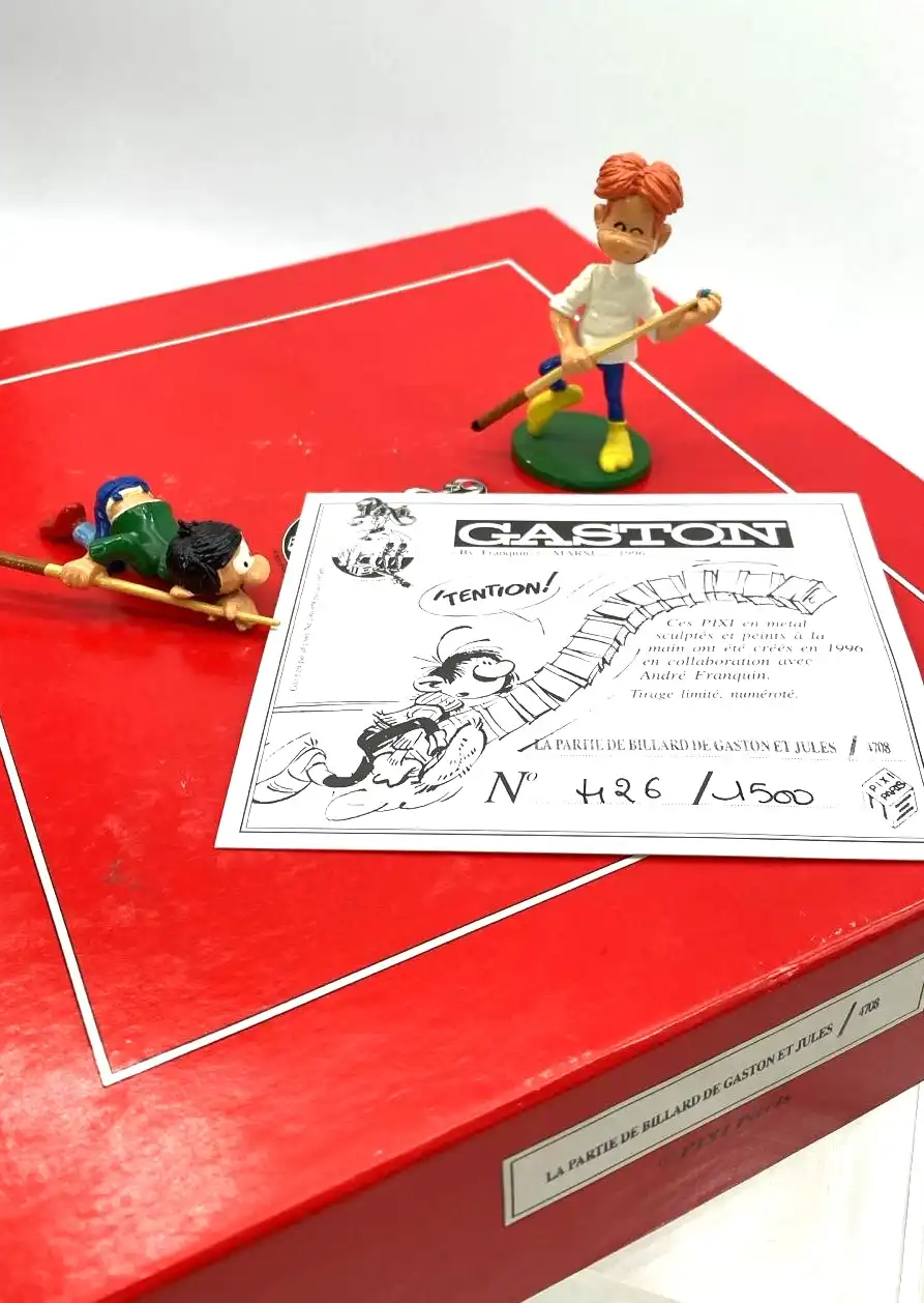 Honnêtement, cette Pixi est une pièce parfaite pour une vitrine Franquin. D’abord, parce que la scène “billard” est immédiatement évocatrice et drôle. Ensuite, parce que le duo Gaston et Jules apporte un vrai supplément d’âme. De plus, la Série n°2 permet de collectionner avec cohérence. Enfin, si tu veux une figurine premium, la Pixi 4708 est un excellent choix.