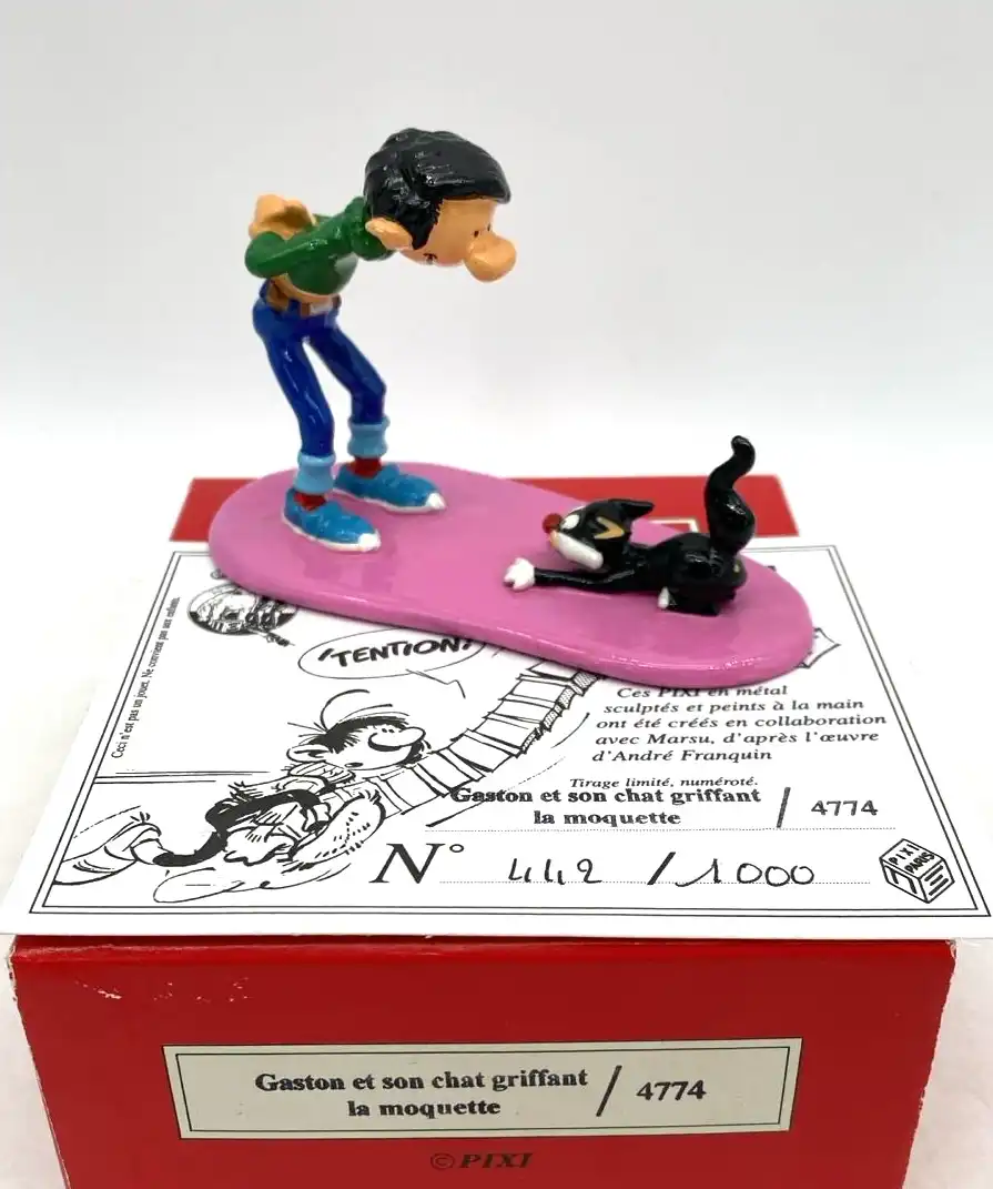 Honnêtement, cette Pixi est un concentré d’humour Franquin. D’abord, parce que le chat en plein carnage sur la moquette résume parfaitement l’univers de Gaston. Ensuite, parce que la Série n°3 apporte un repère clair pour collectionner. De plus, la référence 4774 est une pièce qui fait toujours réagir en vitrine. Enfin, si tu veux une figurine Gaston drôle et premium, celle-ci est parfaite.