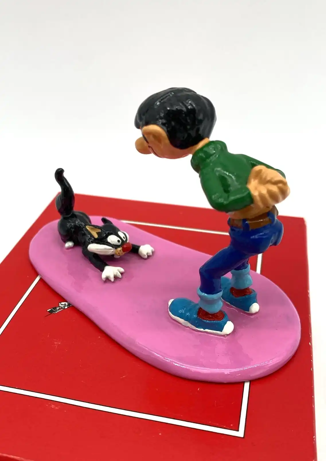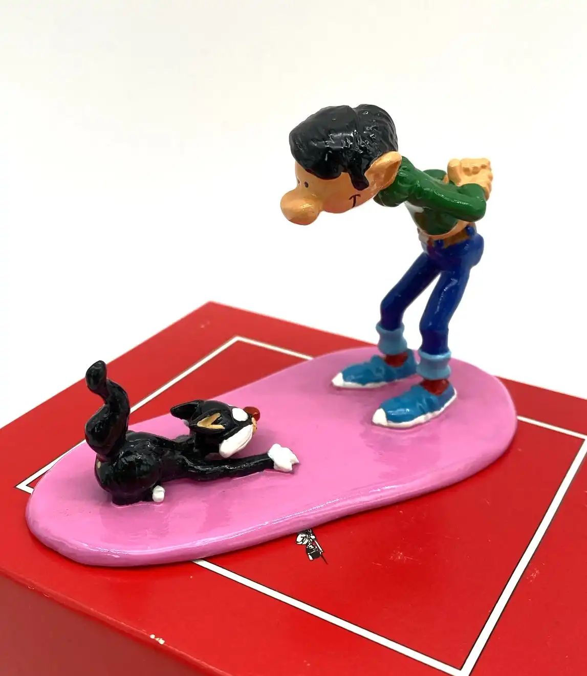 En effet, Gaston Lagaffe, c’est le roi des situations impossibles… qui arrivent toujours au pire moment. Par ailleurs, son univers est rempli de petits détails hilarants : le bureau, les catastrophes domestiques, et surtout les animaux qui viennent ajouter une couche de chaos. Ainsi, cette figurine Pixi 4774, intitulée “Gaston et son chat griffant la moquette” et issue de la Série n°3, capture parfaitement l’esprit Franquin.