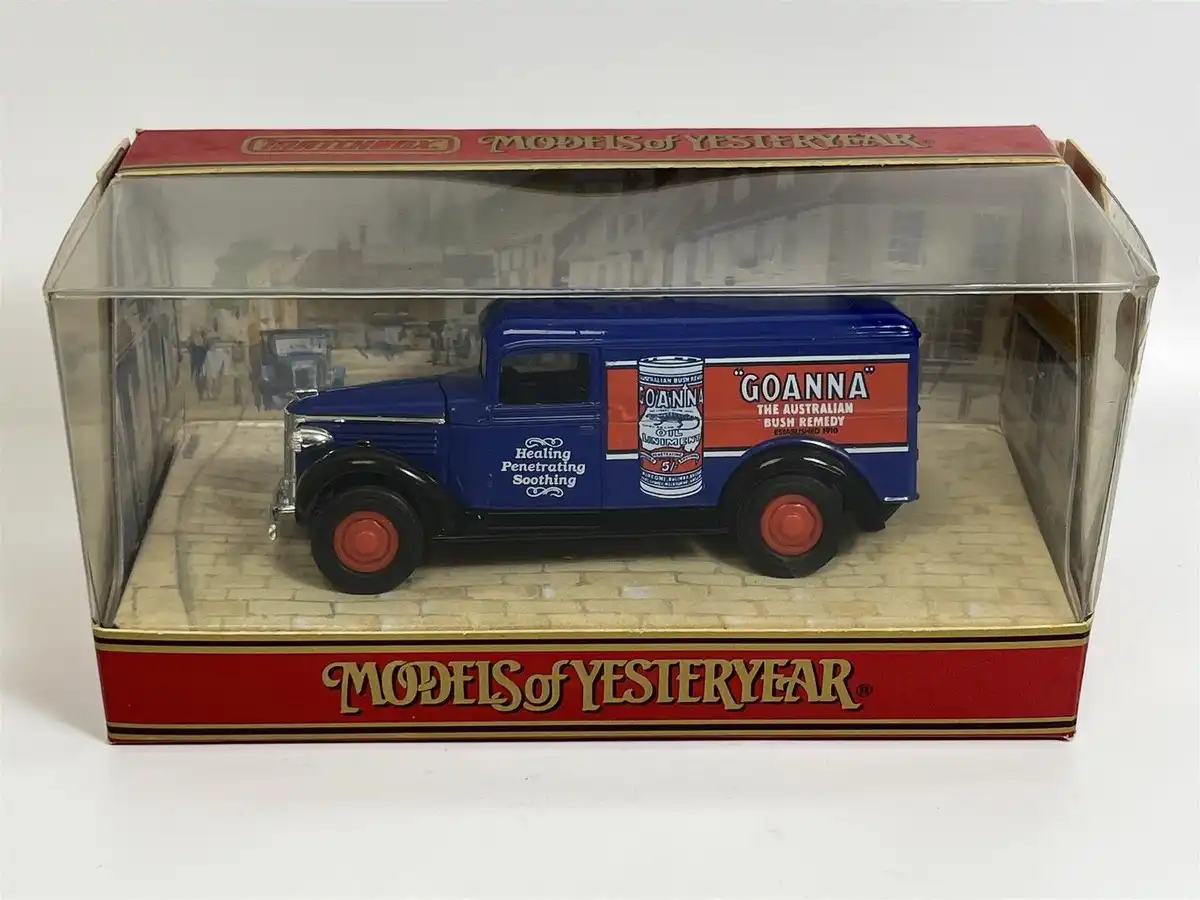 Le GMC Van 1/60 Matchbox Goanna rend hommage à la créativité publicitaire des années 1980. Ce fourgon miniature arbore la célèbre décoration The Australian Bush Remedy, inspirée des produits humoristiques et typiques du folklore australien. Grâce à son style décalé, il s’impose comme une pièce originale dans toute collection Matchbox.