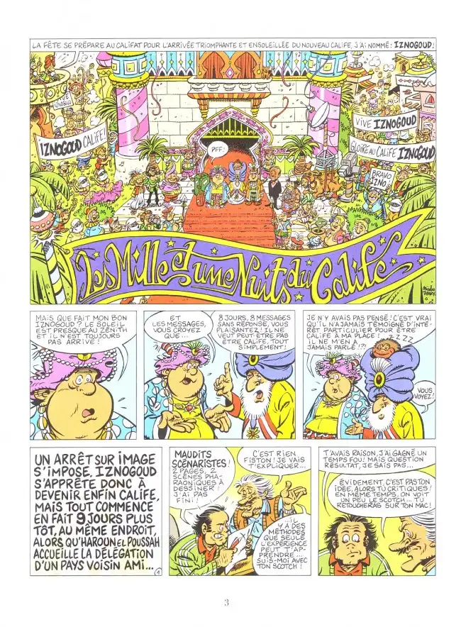 Ensuite, l’album multiplie les situations absurdes et les détournements inspirés des récits orientaux classiques. Ainsi, le calife occupe une place centrale dans ces nouvelles histoires, tandis qu’Iznogoud poursuit inlassablement ses tentatives improbables. De plus, la richesse visuelle de Tabary renforce le plaisir de lecture.