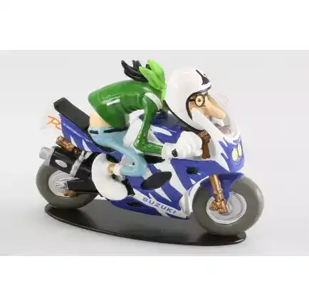 Cette figurine Jean-Raoul Ducable rend hommage à l’univers déjanté de la série Joe Bar Team. Elle représente le personnage sur sa Suzuki 750 GSX-Rw, moto emblématique des amateurs de sportives. La pièce s’adresse aux collectionneurs et aux passionnés de bande dessinée moto.