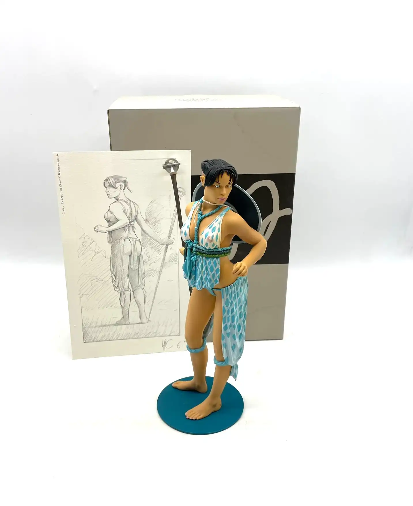 À vrai dire, l’adaptation en volume met en valeur la force visuelle et la présence du personnage. D’un côté, la posture et l’attitude traduisent la singularité de l’univers. De l’autre, la sculpture souligne l’élégance et la cohérence graphique propres à l’œuvre de Bourgeon. Résultat : la statuette s’impose comme un objet à la fois narratif et décoratif.