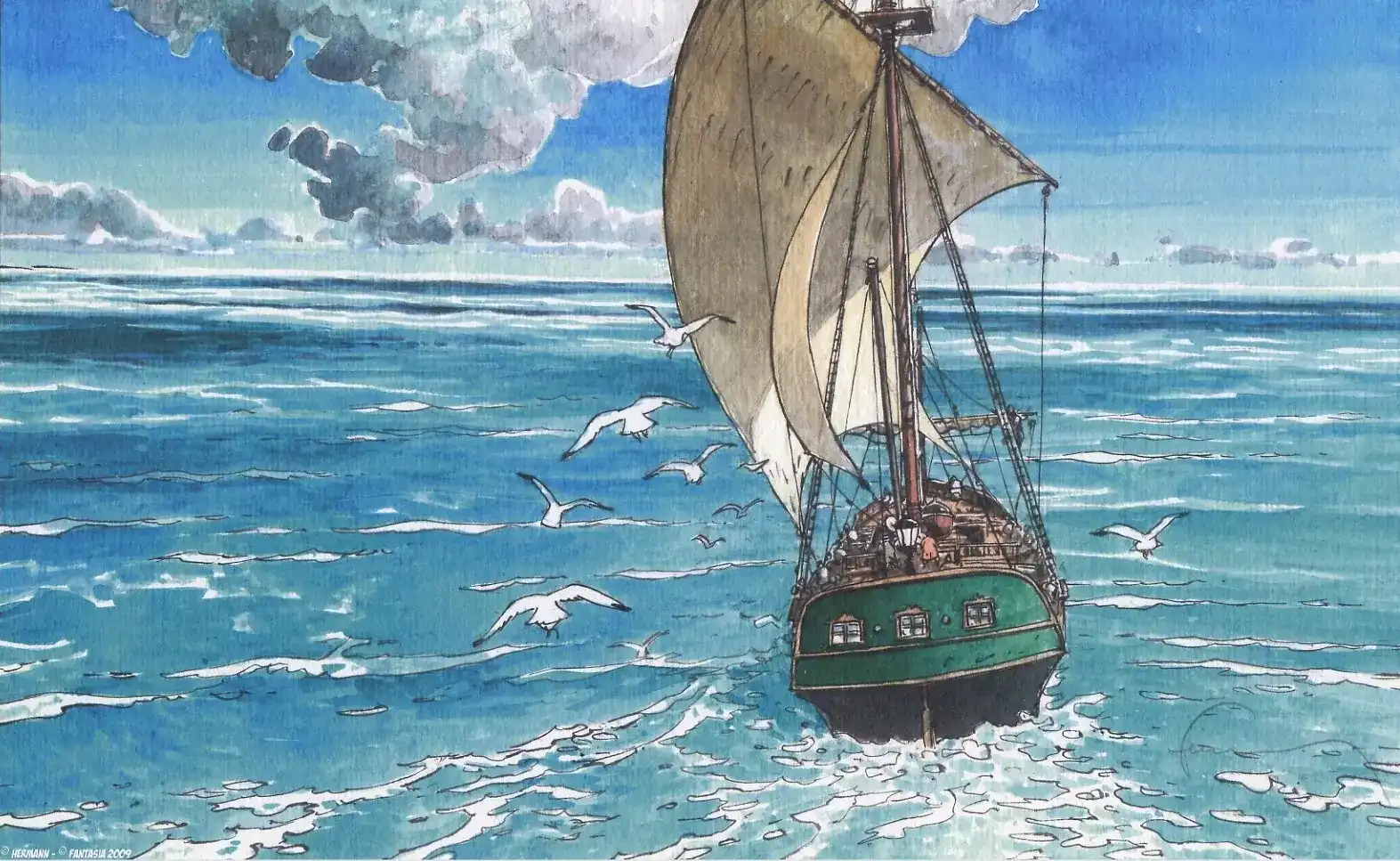 L’ex-libris Hermann signé intitulé « Le passeur bateau » attire immédiatement les amateurs de bande dessinée. En effet, Hermann est reconnu pour son style réaliste et immersif. Il s’impose comme une figure majeure du neuvième art. Ainsi, cette œuvre met en valeur toute la richesse de son univers graphique.