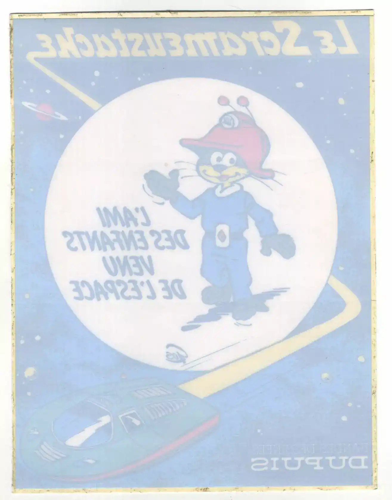 Le Scrameustache – L’ami des enfants venu de l’espace – Autocollant pour vitrine – Gos