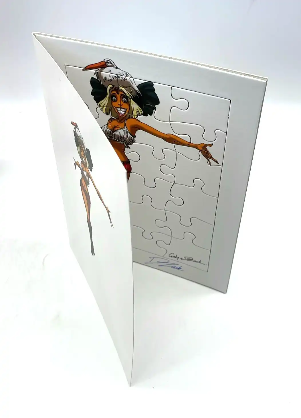Alors, découvre Les Blondes et la Cigogne, un puzzle offset rare signé par Dzack. Inspiré de l’univers humoristique de la série à succès Les Blondes, ce tirage combine l’esprit décalé de la BD avec un format original et ludique. Ensuite, cette création en impression offset de haute qualité est signée par l’auteur, garantissant son authenticité et sa valeur. De plus, il s’agit d’une pièce de collection recherchée, idéale pour enrichir une bibliothèque BD ou une vitrine dédiée. Bref, un objet rare qui allie humour et art graphique.