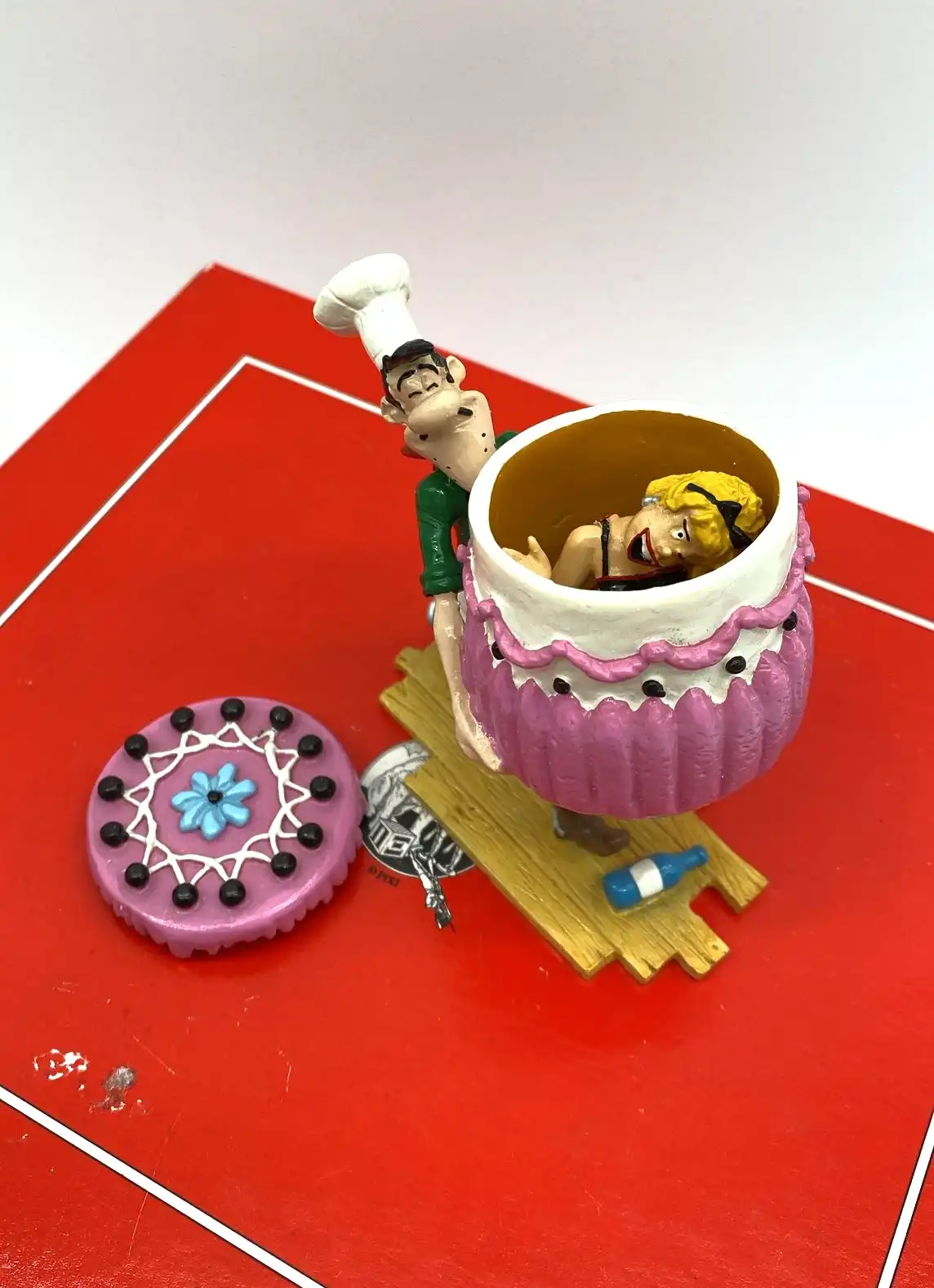 Naturellement, le personnage d’Averell est parfait pour ce type de mise en scène. Ensuite, la présence du gâteau et de Miss Belle donne un côté totalement décalé, fidèle à l’esprit Lucky Luke. De plus, cette figurine raconte déjà un gag sans même avoir besoin d’un texte. Enfin, c’est exactement ce qu’on cherche dans une figurine de collection : une histoire en 3D.