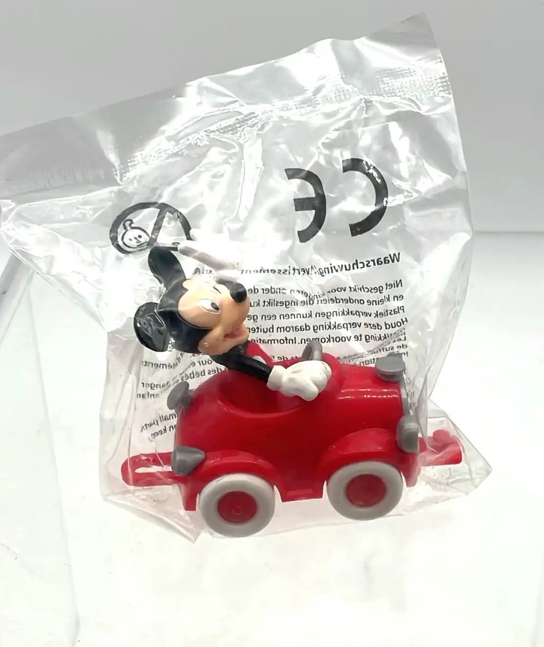 D’abord, cette figurine Mickey Disney représente Mickey en voiture, dans une mise en scène dynamique et joyeuse.