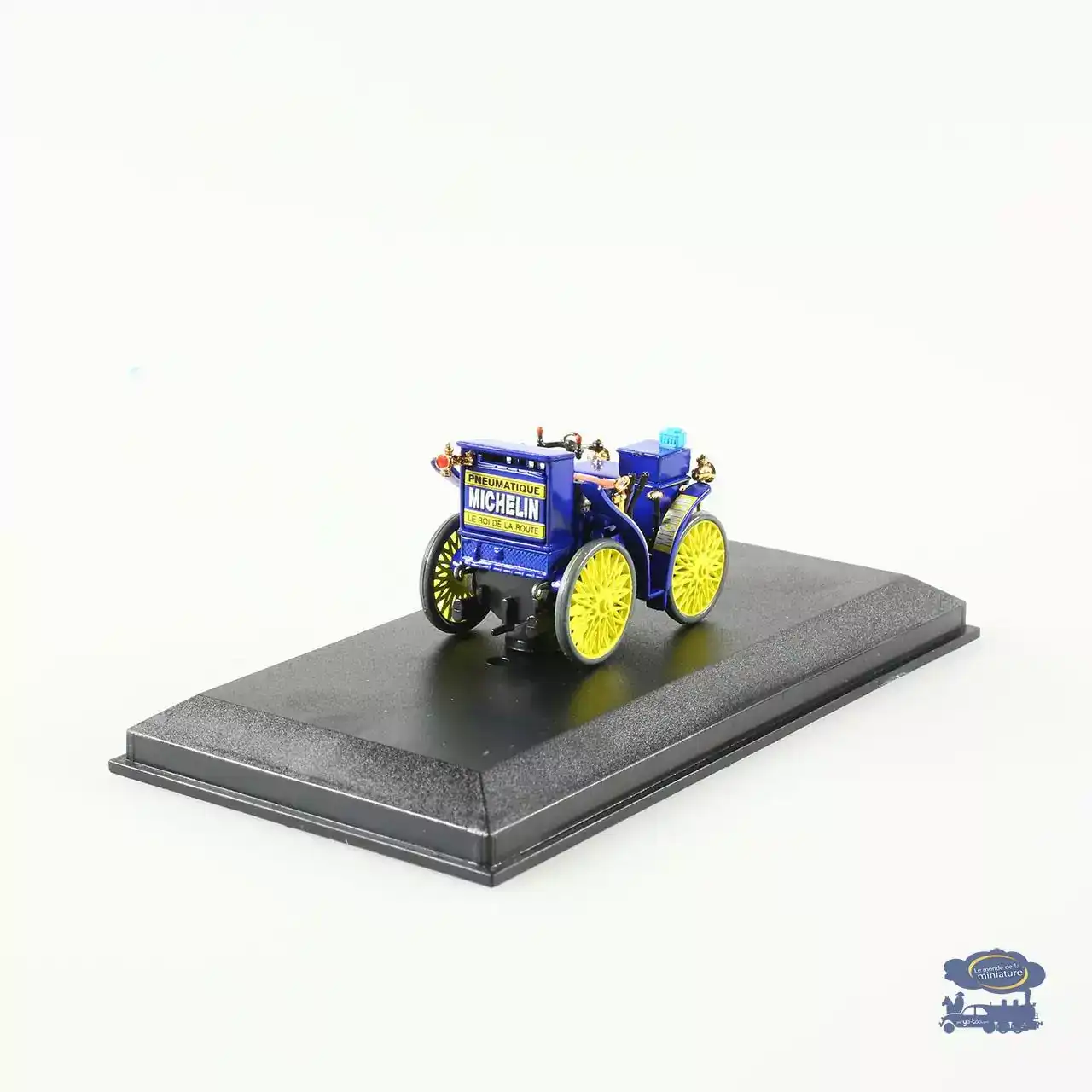 D’abord, cette miniature Michelin 1895 reproduit le célèbre véhicule L’Éclair. Ensuite, elle propose une version fidèle à l’échelle 1/43 adaptée aux collectionneurs.
