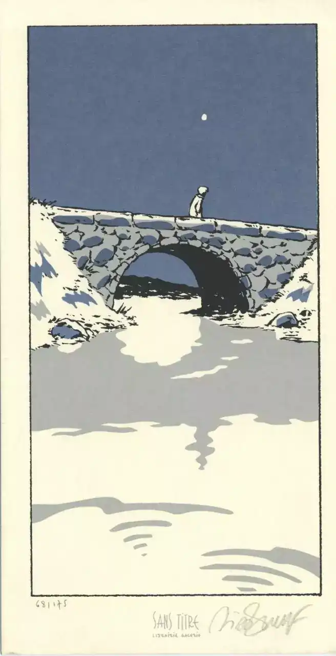 Honnêtement, ce visuel coche toutes les cases du collector “propre”. D’abord, parce que la sérigraphie apporte un rendu haut de gamme. Ensuite, parce que la signature rend la pièce beaucoup plus désirable. De plus, l’ex-libris s’encadre parfaitement, sans effort. Enfin, si tu aimes les pièces BD élégantes et rares, Petit verglas – Le pont est un excellent choix.
