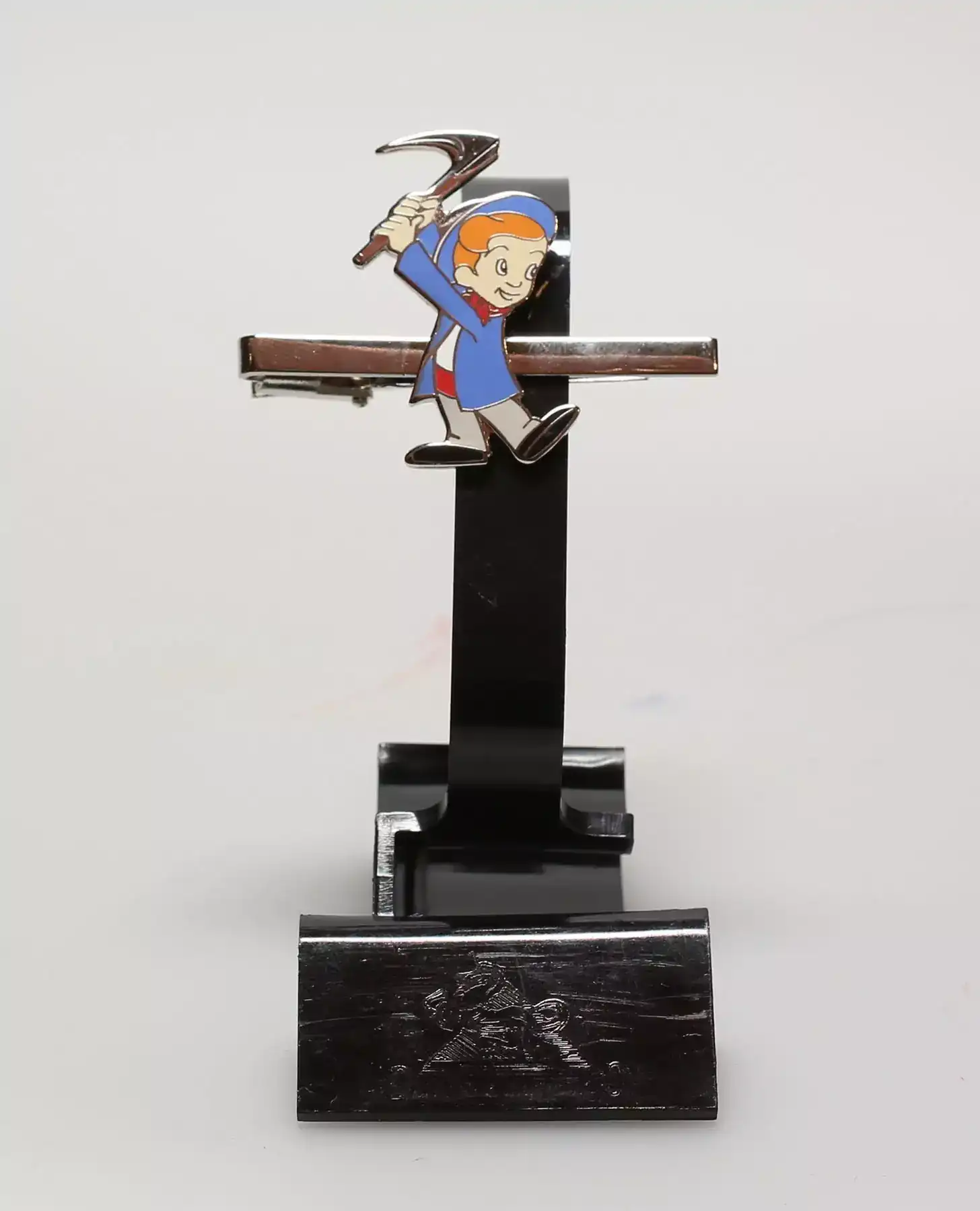 D’abord, cette pince à cravate Jean Mineur met en avant le célèbre personnage du Petit Mineur. Ensuite, elle constitue un accessoire publicitaire au style vintage.
