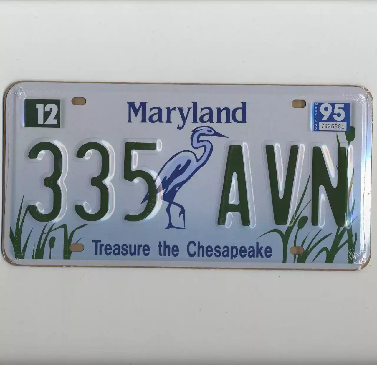 D’abord, cette plaque américaine Maryland reprend le style iconique des plaques d’immatriculation des États-Unis.