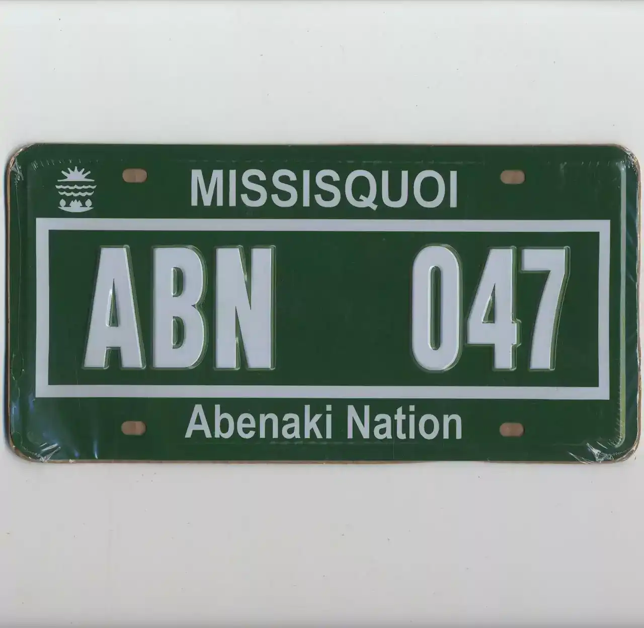 D’abord, cette plaque américaine Abenaki Nation “Missisquoi” reprend l’esthétique iconique des plaques d’immatriculation US.