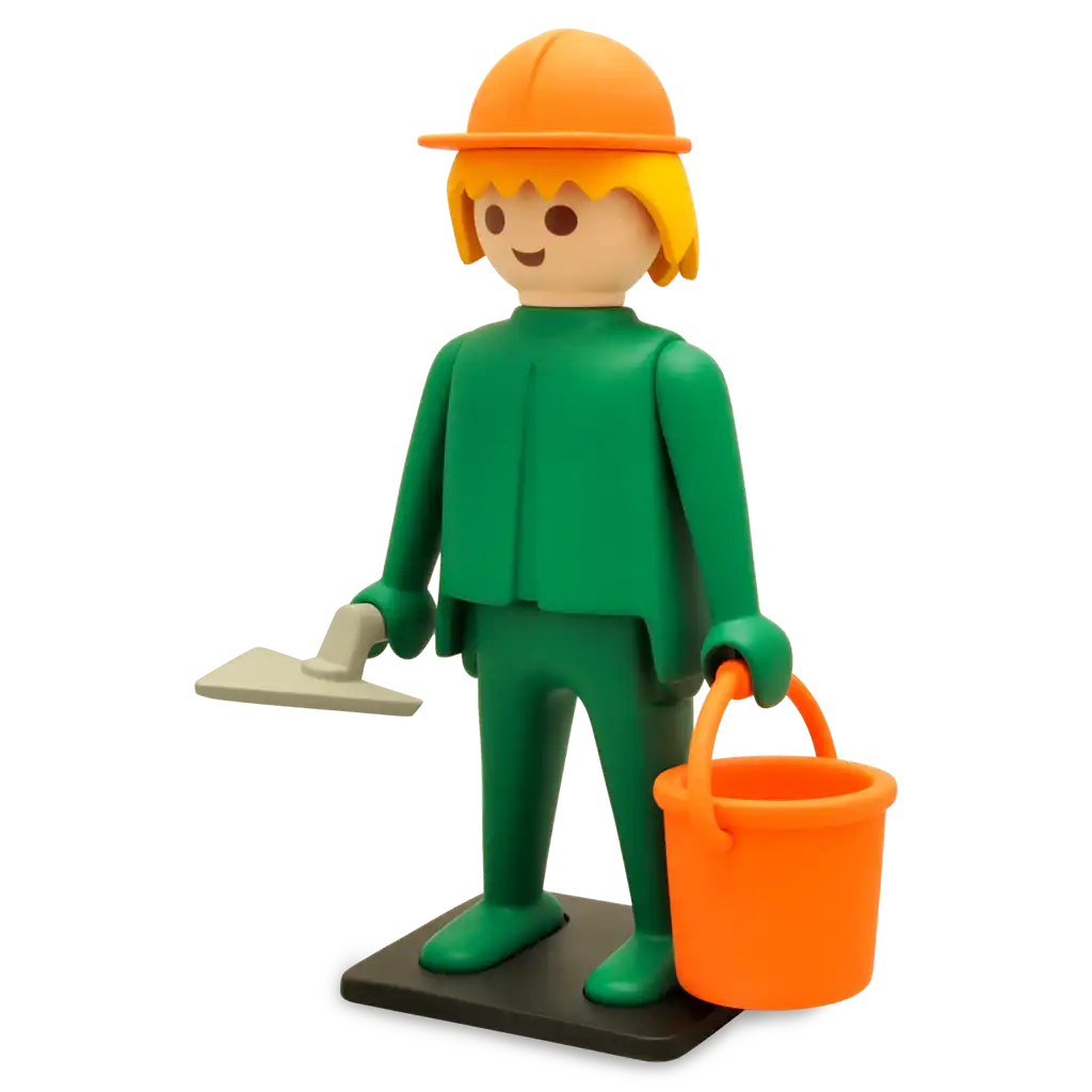 Ensuite, cette figurine Playmobil Plastoy reprend le style graphique simple et immédiatement reconnaissable des personnages Playmobil. En effet, la tenue de maçon et les accessoires évoquent les univers de construction souvent présents dans les différentes gammes de la marque.