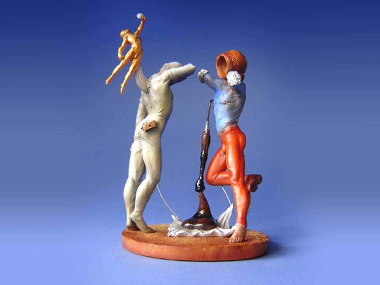 Prenez un artiste visionnaire, sortez de ses oeuvres quelques personnages caractéristiques, fermez les yeux… Grâce à ce passage magique de la 2D à la 3D, vous obtiendrez ces magnifiques figurines en résine peintes à la main. Vous pourrez ainsi recréer chez vous un petit musée, avec les créatures extraordinaires de Bosch, Bruegel et Dali, ou encore les muses de Toulouse-Lautrec, Klimt, Mackintosh et Modigliani. Dali (1904-1989) : Le plus grand des surréalistes sublimait sa propre vie dans la peinture et tentait de traduire son subconscient en images. Statuettes inspirées des tableaux ‘ Autoportrait mou avec lard grillé ‘, ‘ Enfant géopolitique observant la naissance de l’homme nouveau ‘, ‘ Giraffe en feu ‘, ‘ Portrait de Picasso ‘, ‘ Tristan et Iseult ‘, ‘ Décor pour Bacchanale ‘, ‘ Rêve causé par le vol d’une abeille ‘, ‘ La tentation de Saint Antoine ‘ et ‘Poésie d’Amérique – Les Athlètes cosmiques’.