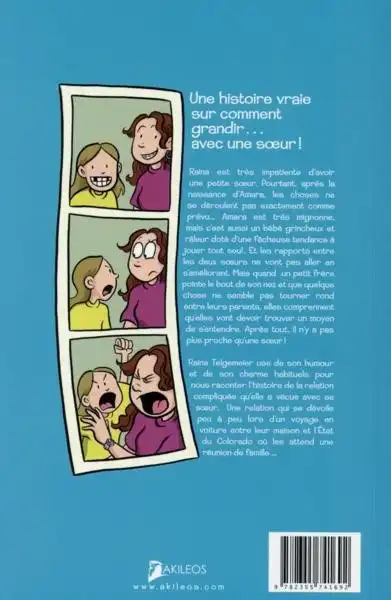 Raina Telgemeier use de son humour et de son charme habituels pour nous raconter l’histoire de la relation compliquée qu’elle a vécue avec sa soeur.