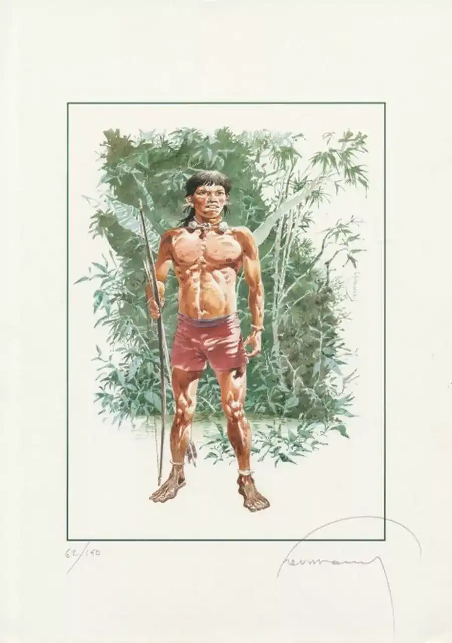 D’abord, SOS Indien d’Amazonie attire immédiatement le regard par la force de son visuel. Ensuite, cette affiche met en avant l’univers graphique de Hermann, un auteur majeur du neuvième art. Ainsi, cette pièce s’adresse autant aux amateurs d’illustration qu’aux collectionneurs attachés aux grands noms de la bande dessinée.
