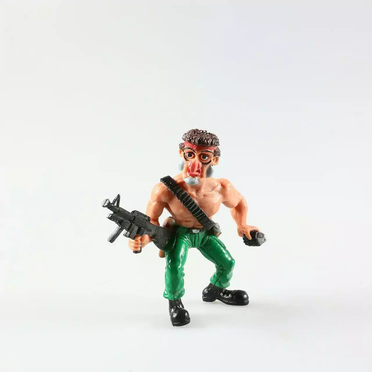 Ensuite, cette figurine Rambo reprend l’apparence du personnage interprété par Sylvester Stallone. En effet, Rambo est immédiatement reconnaissable avec son style emblématique et son image de combattant solitaire.