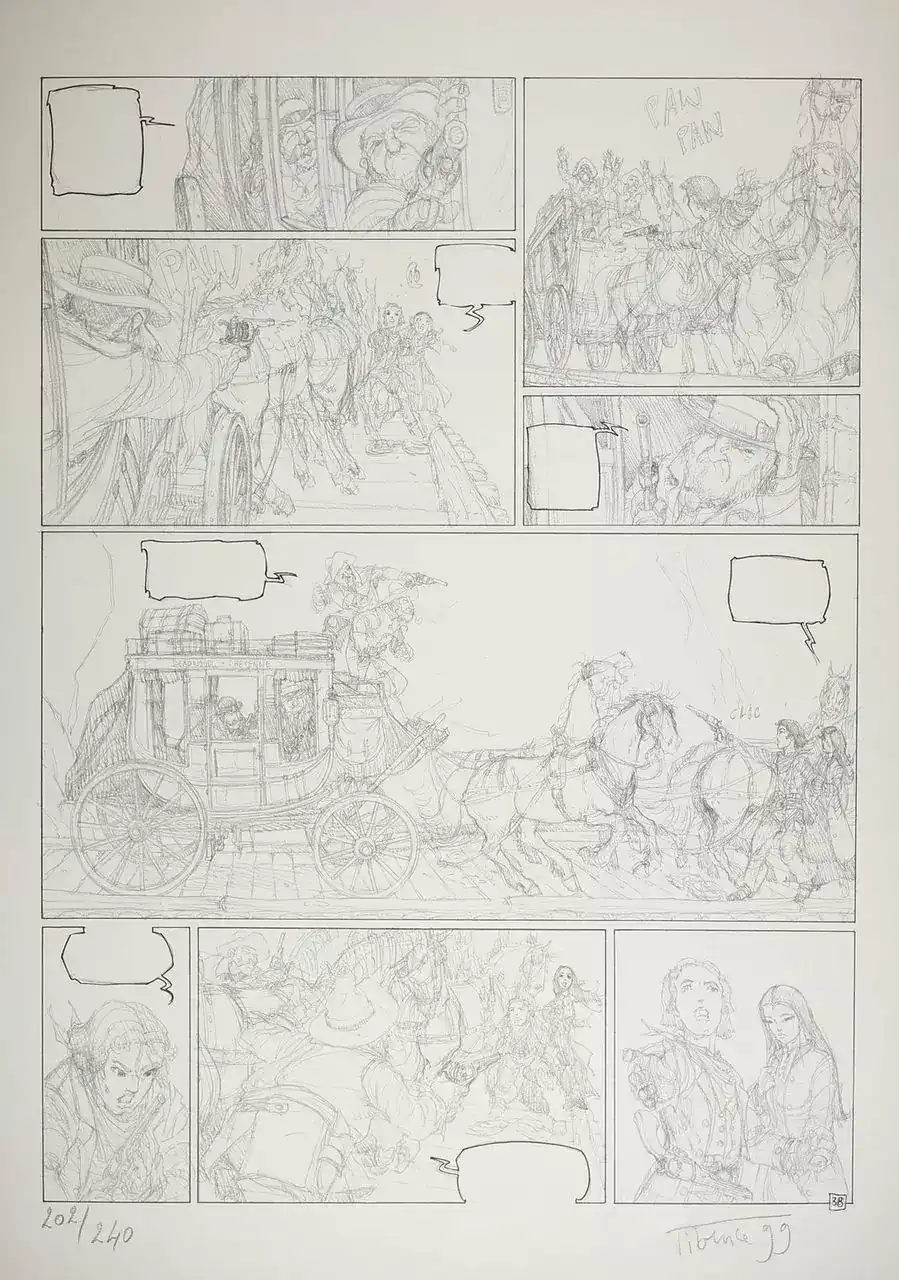 En effet, une planche de BD, ce n’est pas seulement une image. Par ailleurs, c’est un instant de narration, un rythme, une mise en scène, et parfois une émotion qui explose en une seule case. Ainsi, ce fac-similé de la planche 38 de La piste des ombres, proposé ici en affiche offset et signée par Tiburce, devient une véritable pièce d’art à part entière.