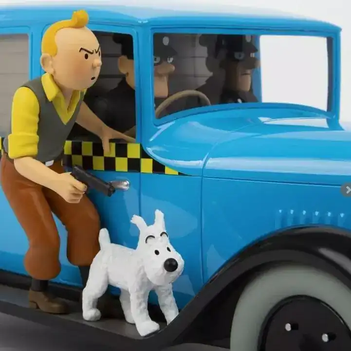 Le Taxi 1929 de Tintin en Amérique 1/12 Moulinsart 2022 est une pièce de collection exceptionnelle directement inspirée du célèbre véhicule aperçu dans l’album. En effet, ce modèle reprend le design du mythique taxi de Chicago, proche du Checker Taxi 1929, que l’on retrouve dans plusieurs séquences mémorables. Grâce à son échelle 1/12e, le modèle offre une présence visuelle remarquable et des détails fidèles au style ligne claire d’Hergé.