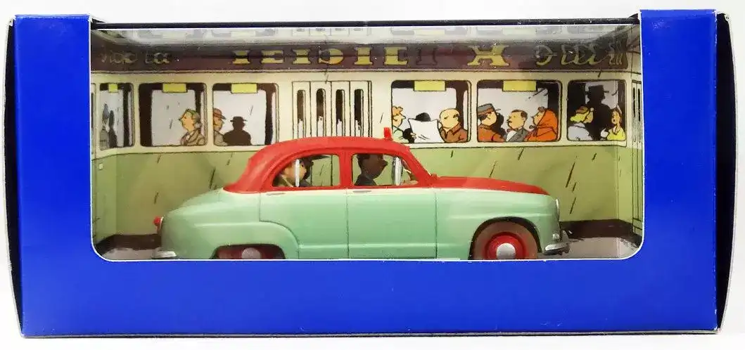 En effet, Hergé construit cet album comme un véritable thriller. Ensuite, les taxis et voitures anonymes jouent un rôle clé dans les scènes de filature. De plus, le taxi Simca Aronde renforce le réalisme des déplacements urbains. Enfin, cette miniature permet de redécouvrir cet aspect fondamental de l’album.