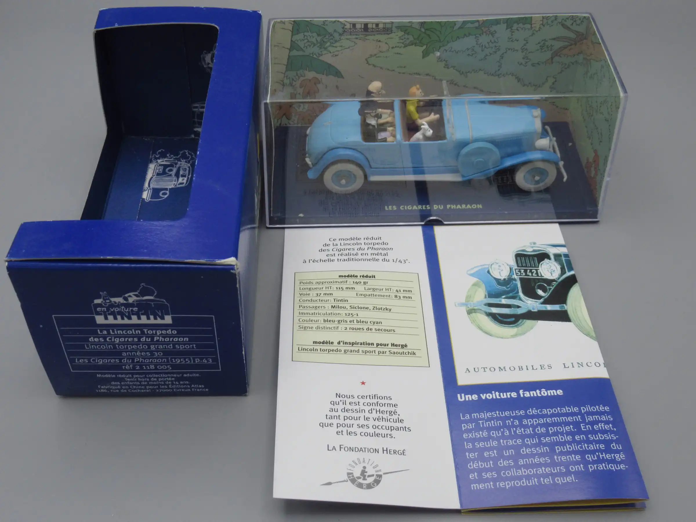 Par ailleurs, ce véhicule porte le numéro 5 dans la collection Atlas. Ensuite, cette numérotation facilite le classement et la cohérence de l’ensemble. De plus, cette Lincoln s’adresse autant aux collectionneurs de Tintin qu’aux amateurs de voitures de prestige miniatures. Enfin, elle complète harmonieusement les autres véhicules liés aux débuts de la série.