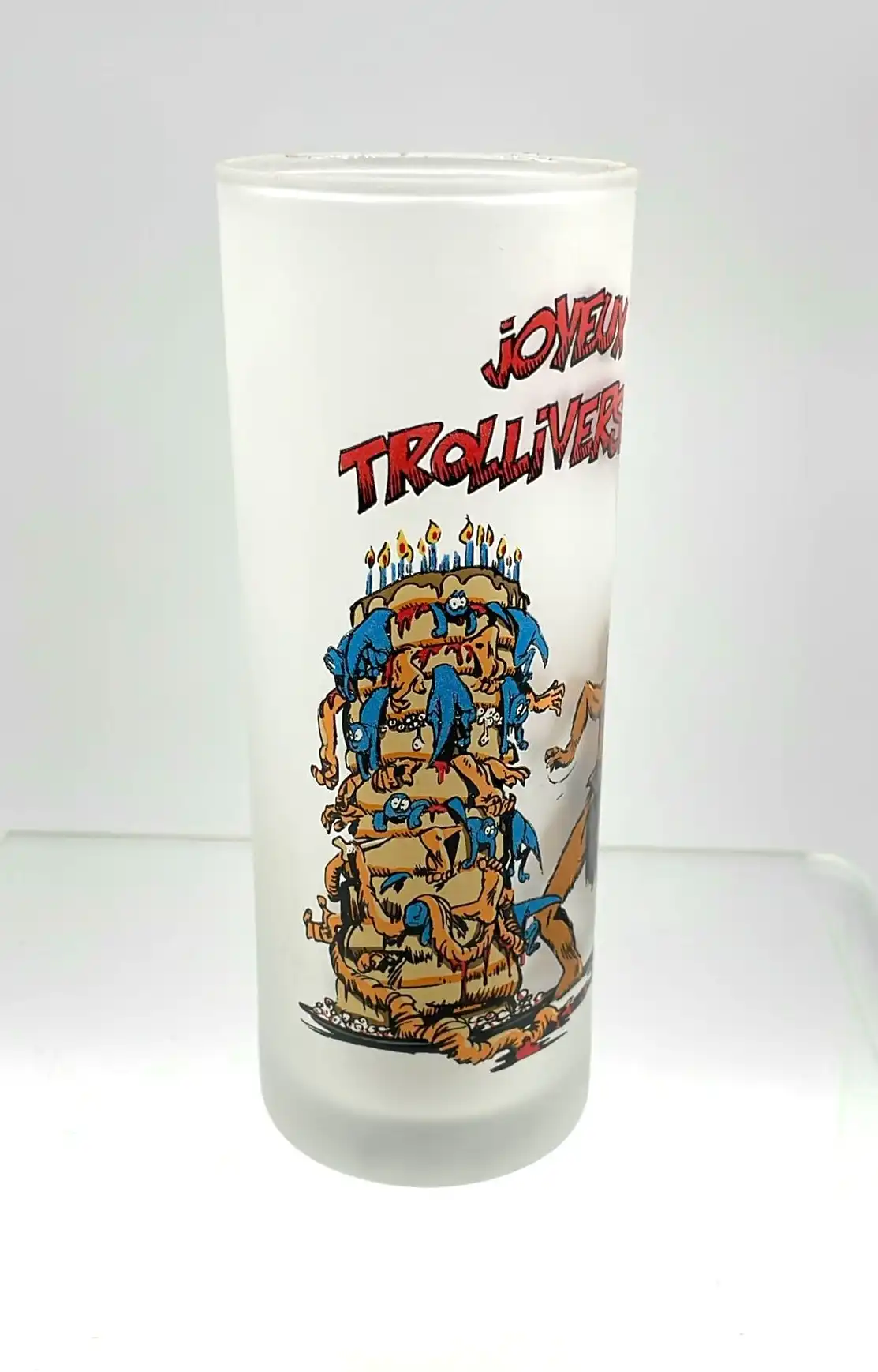 D’abord, ce verre Trolls de Troy intitulé Joyeux Trolliversaire s’inscrit dans l’univers décalé et humoristique de la série.